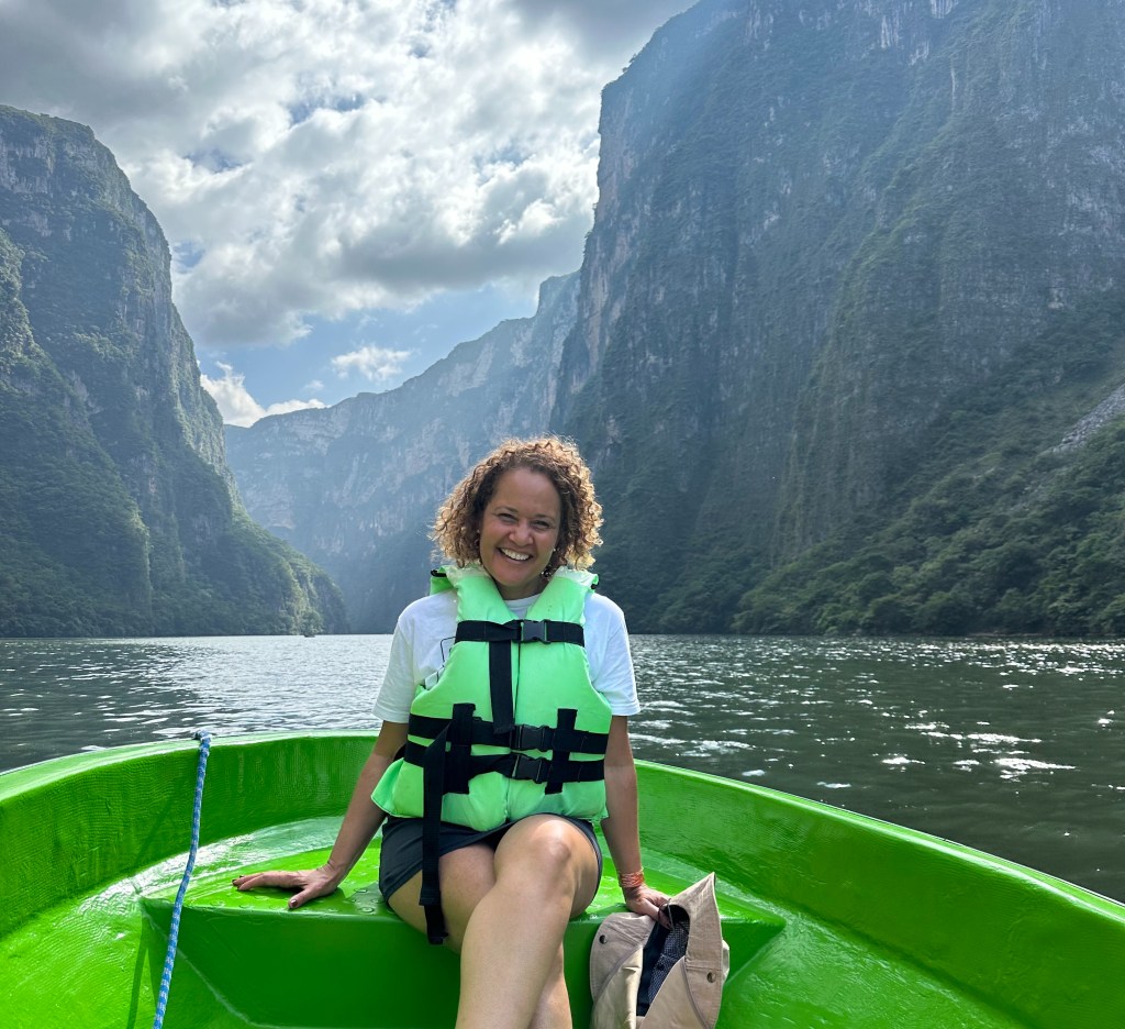 Taking my first day off in weeks, I travel to the Sumidero Canyons in Chiapas. This may be the most majestic place I have ever seen, with its 3,000 feet high canyon walls, streaming waterfalls and burst of wildlife. Looking at the American alligators on the river banks, the swinging monkeys and countless birds species, I feel like a mere spec in the grand natural world and grateful to be a part of it. Passing through this paradise, we enter a cove watched over by the Virgen de Guadalupe. A mass of garbage and plastic bottles saddle alongside the boat that have washed here by the rains and sea. Funny how we humans have talked ourselves into thinking that we’re the kings of the world and therefore have the right to destroy mother earth. I am without a phone and unable to permanently capture the dichotomy of the experience, but here is one picture snapped by a fellow American on the tour.